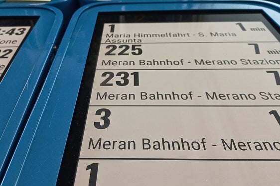 Con questo progetto pilota, il Dipartimento mobilità della Provincia utilizza la tecnologia della E-Paper, già nota per gli e-book. Questi display di carta elettronica mostrano in tempo reale i dati sulle coincidenze degli autobus in tedesco e in italiano. Oltre a quello di Termeno, altri dodici display saranno installati a Merano. “L'E-Paper-System è un passo innovativo verso una maggiore sostenibilità e accessibilità del trasporto pubblico”, spiega l'assessore provinciale alla Mobilità, Daniel Alfreider. “Dovrebbe consentire a tutti di informarsi sui prossimi collegamenti del trasporto pubblico in modo semplice ed efficiente”.